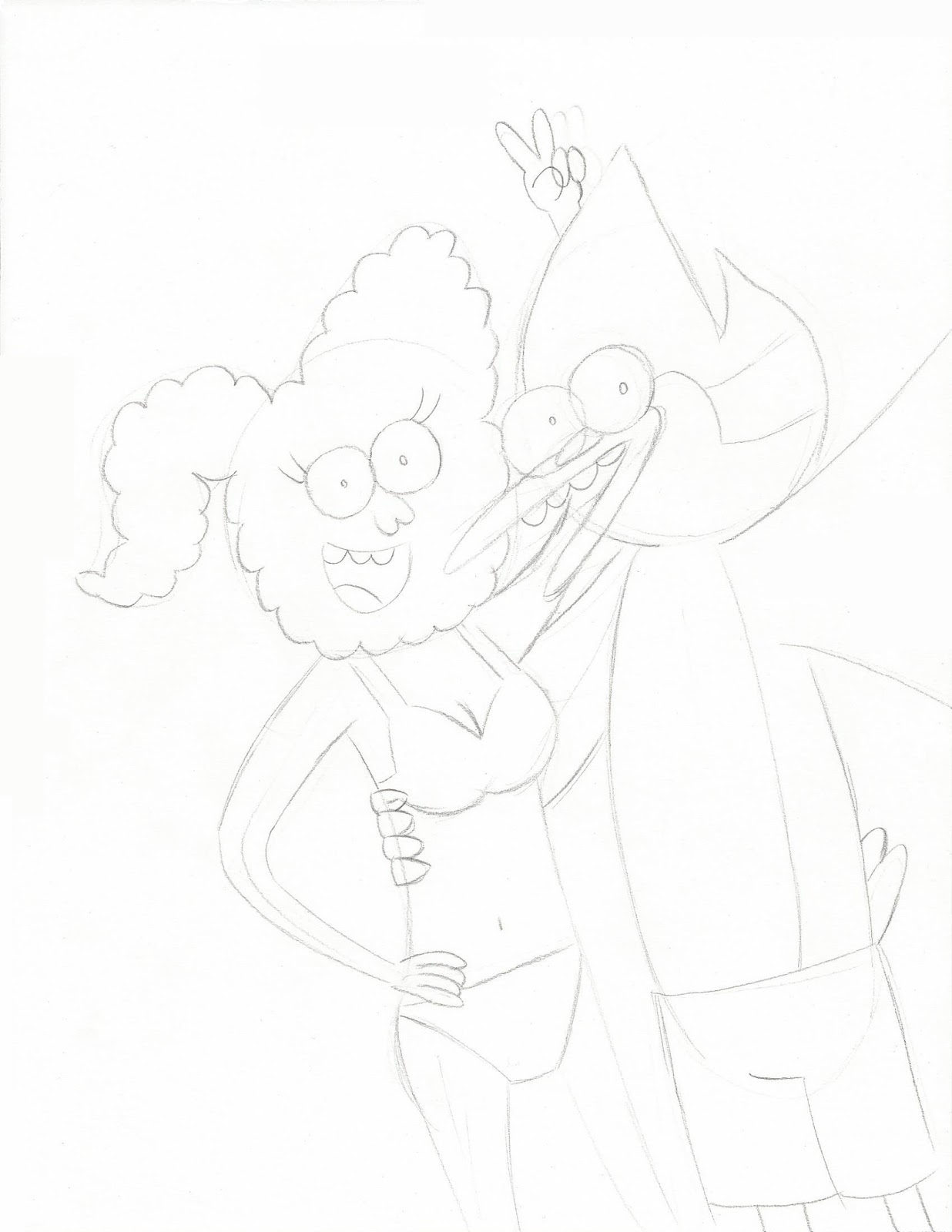 All finished. Here the next selfie pic. Mordecai and his girl CJ (Regular Show) at the beach together while taking selfie.